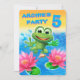 Pulando o convite customisable do aniversário do divertimento do sapo. Uma de minhas ilustrações favoritas. Este sapo pequeno do pulo ama aniversários e partidos tanto que está saltando certo fora da imagem. Aperfeiçoe para mercadorias do partido de todo o miúdo, você encontrá-la-á em cartões, convida-a e placas e vário roupa dos miúdos. Tudo com idades e nomes customisable para o partido costurado perfeito.