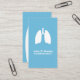 Um cartão de visita moderno e contemporâneo que apresenta um par de pulmões humanos como uma silhueta contra um fundo azul. Áreas de texto personalizáveis para o nome, o nome da especialidade ou da clínica e outras informações de contato no verso. Para obter solicitações personalizadas ou ajuda para personalizar, use o link de contato de armazenamento acima. cartão de visita para pneumologistas e cirurgiões pulmonares ou qualquer pessoa que trabalhe com pulmões ou vias respiratórias humanas.