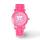 Relógio de menina personalizado | silhueta de borboletas. Crianças observam com borboleta branca | Personalizável com nome. Relógios de pulso personalizáveis para crianças. Boa ideia de presente de aniversário para meninas. Silhueta de inseto animal. Fundo rosa.