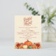 Um fundo bege suave. Decorado com abóboras e flores laranja e amarelas. Personalize e adicione os detalhes da festa. Script de texto: Grateful e abençoado. 1 folha = 1 convite impresso de borda a borda.
