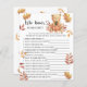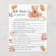 Celebrar com esta festa de chá de fraldas do ursinho de outono! Ursinho de pelúcia bonitinho com uma abóbora de outono nas patas do outono. No verso do cartão estão as folhas do outono. Itens correspondentes disponíveis.