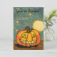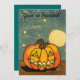 Esta fofa design do Halloween apresenta uma abóbora de jack-o-lanterna contra um céu estrelado com uma lua de cheio. A imagem tem uma textura vestida para um olhar de vintage. Personalize o texto para um convite perfeito para o seu partido ou evento.