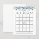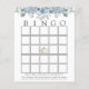 Cartão de bingo chá de fraldas com cascata de cor d'água de florais azuis e uma abóbora branca. Uma maneira divertida de interagir com convidados chás enquanto a futura mãe abre os presentes.