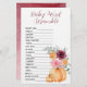 Jogo de chá de fraldas divertido personalizado. Personalize-o para torná-lo exclusivamente seu. Você pode alterar a fonte, a cor e as palavras. Junte-se com guardanapos de papel, adesivos, cartões de agradecimento, convites, jogos de chá de fraldas, sinal de boas-vindas e muito mais. Tudo o que você precisa para fazer uma festa esplêndida. Visite a coleção Floral Cor-de-Rosa Cinzenta Queda.