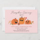 Convite de festas giratório de abóbora design, bonito, rosa e moderno, com três abóboras felizes. Perfeito para uma festa de Halloween.