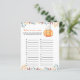 "Uma abóbora está a caminho. Celebrar com este filhote de abóbora de desenho animado temido para festa de chá de fraldas! Bomba de desenho agudo kawaii, de cor aquosa, com chapéu de outono (boné) e folhas de outono. No verso do cartão estão as folhas do outono.