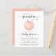 Um belo convite de chá de fraldas, neutro em termos de gênero, com "A Sweet Little Pumpkin Is On Your Way" escrito numa mistura de tipografia de cinzas e um roteiro de na moda, e uma aquarela de laranja pastel de uma abóbora. Você pode personalizar o nome da mãe e os detalhes do chá em uma simples tipografia de cinzas. Especificar o sexo do bebê, se desejado (por exemplo, "está a caminho").