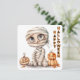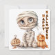 Pumpkin Perch - Mamãe no outono Poeira Uma múmia de olhos largos envolta em ligaduras brancas suaves senta-se suavemente no chão, cabeça inclinada com charme silencioso. A pelagem do personagem são duas abóboras esculpidas — uma empilhada em um design de dois níveis — ao lado de um pequeno crânio e folhas de outono dispersas. A paleta muda e o estilo caprichoso misturam o mal-estar do Halloween com o calor sazonal, capturando um momento de sujeira e doçura assustadora num cenário de queda aconchegante.