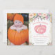 Convite de Primeiro Aniversário da Pumpkin com foto personalizada. Convite de aniversário De Menina. Flor Floral de Água e Fundo de Confetti Glitter Dourado.Rosa. 1rua No Primeiro Dia. 6 1rua segundo 3º 5 4º 7 9º 10º, Qualquer Idade.