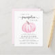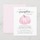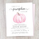 Um belo convite de chá para bebê do outono, com orçamento, apresentando "A Sweet Little Pumpkin Is On Her Way" na tipografia de cinzas e um roteiro para na moda, e uma cor d'água rosa da abóbora. Personalize o nome da mãe e os detalhes do chá em simples tipografia.