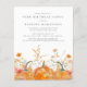As abóboras de queda estão aninhadas em delicadas flores silvestres amarelas do ouro e laranja para criar uma estética elegante. Todo o texto é editável para que você possa facilmente artesanato seu próprio humor especial.