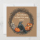 A trivet do Halloween apresenta uma coroa espinhosa com corvo, crânios e lanternas com face sinistra sobre fundo marrom e texto personalizável "algo mal assim vem" na fonte Ravenmore. Pode ser usado como um convite para festas de Halloween também!