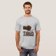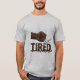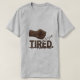 Esta camiseta gráfica única e ousada apresenta um punho poderoso feito inteiramente de grãos de café torrados, literalmente quebrando a sensação de estar "CANSAdo".