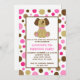 Personalize este convite de aniversário de Cachorro Cachorro apresentando um filhote adorável e bolinhas em rosa e marrom. Copyright © 2011-2013 Kristen S., Convidando Expressões, Todos os Direitos Reservados.