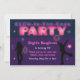 Um convite divertido para um brilho na festa escura. O convite apresenta uma silhueta de duas crianças brincando com bastões e anéis brilhantes. As cores são roxas e cor-de-rosa. O brilho na Festa Negra está em grandes letras brilhantes. Perfeito para qualquer tipo de festa de luz negra.