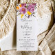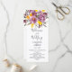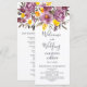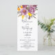 No outono elegante, o programa de casamentos florais roxos de inverno com uma caligrafia moderna e elegante, o casamento de Script em flores roxas, laranja e amarelas com folhagem verde-sábio.