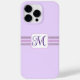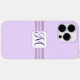 Esta capa de telefone elegante apresenta faixas roxas e uma inicial personalizável.