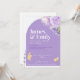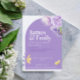 Coloque o tom com um florescimento alegre! Este Convite para Pessoas Púrpuras apresenta florais vibrantes em púrpuras e amarelos de sol suaves, em conjunto com uma fonte retrô que adiciona apenas o toque certo da personalidade. É uma nova introdução floral para o seu grande dia — elegante, um pouco atrevido, e totalmente você.