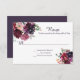 RSVP de casamento de aquarela apresentando flores aquáticas exuberantes em roxo, violeta, rosa, mauve e vermelho com verde correspondente. A parte de trás do cartão é um roxo escuro. O modelo é fácil de personalizar - há elementos de um roteiro caligráfico escrito à mão em roxo escuro e uma mistura de fontes modernas. Convidado de casamento.