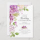 Convite de aniversário Floral 16º com lindas pinturas manuais roxas e cremes e folhas verdes folhadas. Sacudir nosso convite para ver uma borboleta de cor d'água roxa coordenadora de volta para um toque especial extra.