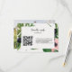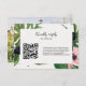 Este cartão RSVP de casamento apresenta uma bela ilustração das flores tropicais cor-de-rosa e da folhagem da selva verde e cria-se a coordenar com a nossa coleção "Casamento da Selva Tropical". A frente deste cartão de resposta é facilmente personalizável com suas informações de RSVP on-line e seu próprio Código QR para enviar seus convidados diretamente para o seu site de casamento, enquanto a parte de trás é personalizável com uma de suas fotos favoritas.
