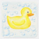 Borracha amarela branca, com bolhas de banho, num conjunto de adesivos.