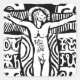 Design inspirado na xilogravura do crucifixo de Paul Gauguin.