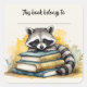 Quadrado Adesivo de guaxinim e livros editáveis
