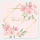 Obrigado de rosas cor-de-rosa suave, seu adesivo quadrado para cartas elegantes, presentes românticos, para belos aniversários e para pequenos negócios.