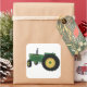 O adesivo personalizado de um trator verde e amarelo permite editar o texto. O texto é personalizado para o seu nome ou nome de fazenda. Trator desenhado digitalmente.