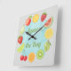 Quadrado Aperte o dia - Relógio de Fruta de Aquarela