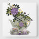Quadrado bule de chá, rosas, cupcake, relógio da cozinha de