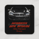Cartão de visita de Serviço de Descarte Automático Móvel Um design simples e na moda com fundo preto e silhueta de carro de luxo. Personalize os detalhes e torne-os seus. Um design ideal para o detalhamento de carros, lavagem de carros, limpeza de carros, mecânica, reparo de carros, engenheiro, reparo e serviço de motores de carro, peças de carros etc.