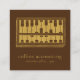 O cartão de visita de quadrado moderno apresenta uma ilustração de abacus dourado sobre fundo castanho escuro com texto contemporâneo na frente e um código QR personalizável para o seu website ou mídia social no verso.