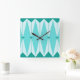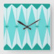 Este Relógio de Parede Acrílica de Ouros Geométricos e Starbursts Quadrados tem todo o encanto da cozinha de algo que é gatinho e encantador. A design inspirada na safra apresenta um fundo azul-pavão mod com azul-claro, hexágonos alongados, em camadas com diamantes-tartaruga, e estrelas azuis de pavão. É um caleidoscópio de retro-bondade! Este design do estilo Palm Primavera de 1950 e 1960 parece que seria igualmente em casa com uma placa moderna de meio século ou na casa da sua família de televisão clássica favorita.