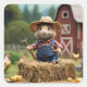 Quadrado Farmer Adorável do Mouse no adesivo do Hay