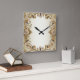 Quadrado Flores brancas - Relógio Dourado Decorativo de Par