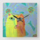 Quadrado Gato Amarelo com Relógio Abstrato de Arte Arredond