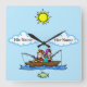 Esta é a mesma design do relógio que oferecemos. É um homem e uma mulher (marido e mulher?) que adoram pescar. Eles estão no barco e você pode personalizar isso com seus nomes em cada uma das nuvens, se quiser. O sol está na posição das 12 horas e um peixe na água está na posição 6. Você pode alterar a cor do plano de fundo se quiser. Este é um presente maravilhoso para uma cabana de pesca de casal. NOTA: Este design ajustado oferece os relógios de parede redondos e quadrados.