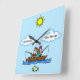 Quadrado Homem e mulher pescando no relógio da parede de ba