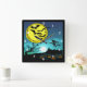 Quadrado Jovens bruxas voando entre o relógio da noite