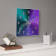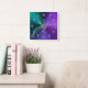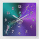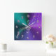 Metálico Roxo De Teal Com Relógio De Parede De Vidro. O metal brilhante parece gradiente em tons legal de verde azul e roxo, com um vidro como uma clave tripla musical no centro, cercado por vidros como números de lavandas. Um funcionarios varrendo com notas coloridas adiciona mais talento a este relógio de parede para seu músico ou amante de música favorito.