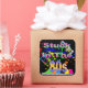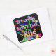 Adesivo quadrado com imagem de placas de tinta vermelha, laranja, amarela, verde e azul, tênis de alto nível em cores neonatais, fitas cassetes, óculos de sol coloridos e o texto "Preso nos anos 80" em letras neonatais. Ver vinheta de vinilo cortada por medida, confetti, bolsa de favor, caixa de favor, etiqueta de favor, sacos de presente, etiqueta e papel de embalagem. Veja toda a coleção Tubular 80s Sticker nos CONVITES | Seção Stickers & Labels