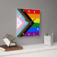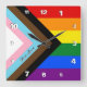 Relógio de parede moderno com a bandeira Progress Rainbow com todas as cores do Orgulho e texto facilmente personalizado / nome "Um Amor". O texto também pode ser excluído, se preferido.
