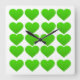Quadrado relógio com corações verdes