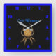 Uma foto de uma aranha Orb Weaver disparada à noite em sua teia. É brilhante e colorido num relógio de parede quadrado. Foto em Hutchinson Kansas EUA.