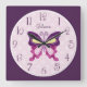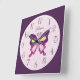 Quadrado Relógio de Borboleta Roxo Personalizado