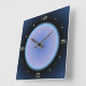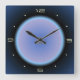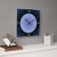 Um lindo círculo lunar de rosa, malva com uma borda azul clara. Este relógio quadrado tem um fundo azul índigo e numerais creme.