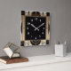 Quadrado Relógio de Deco de Arte Escuro em Branco Preto e D