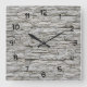 Relógios de apartamentos de olhares de tijolos de pedra projetados com um fundo de arte em pedra branca impresso digitalmente criado como um relógio de parede de cozinha ou relógio de quarto para um estilo moderno ou caseiro.